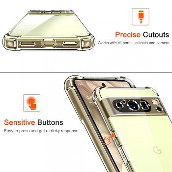 Pouzdro Techsuit se pyšní křišťálově čistým a průhledným designem, který nechá vyniknout originální krásu vašeho Google Pixel 8 Pro. Je vyrobeno z flexibilního TPU materiálu, který zajišťuje snadnou instalaci a demontáž. Klíčovým prvkem jsou zesílené rohy, které efektivně absorbují nárazy a chrání telefon před poškozením při pádech. I přes svou robustní ochranu si pouzdro zachovává štíhlý profil, který nezatěžuje telefon a zajišťuje pohodlný úchop.
