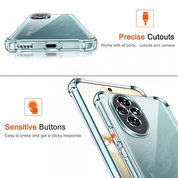 Kryt Techsuit se vyznačuje čirým a minimalistickým designem, který nechává vyniknout původní krásu vašeho telefonu Honor 200. Je vyroben z kvalitního silikonu, který je příjemný na dotek a zároveň poskytuje efektivní tlumení nárazů. Zesílené rohy krytu, viditelné na obrázku, jsou speciálně navrženy tak, aby absorbovaly energii při pádech a minimalizovaly riziko poškození zařízení. Přesné výřezy zajišťují bezproblémový přístup ke všem konektorům, mikrofonům, reproduktorům a fotoaparátům, zatímco tlačítka si zachovávají jistý a citlivý stisk. Díky své průhlednosti kryt nenarušuje estetiku telefonu a zároveň jej chrání před poškrábáním, prachem a drobnými nárazy.