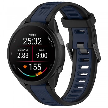 Pásek Techsuit W053 se pyšní dvoubarevným provedením, které kombinuje sytě tmavě modrou barvu s elegantními černými detaily. Tato kombinace dodává pásku moderní a sportovní vzhled, který se hodí k různým příležitostem. Je vyroben z vysoce kvalitního silikonu, který je příjemný na dotek, odolný vůči potu a vodě, a zajišťuje tak dlouhou životnost a snadnou údržbu. Vnitřní strana pásku je tmavě modrá s podélnými drážkami, které zlepšují prodyšnost a komfort nošení. Vnější strana je převážně černá s tmavě modrými akcenty a texturovaným povrchem, který dodává pásku dynamický vzhled. Zapínání je řešeno klasickou kovovou přezkou v tmavé barvě, která zajišťuje bezpečné a spolehlivé uchycení na zápěstí.