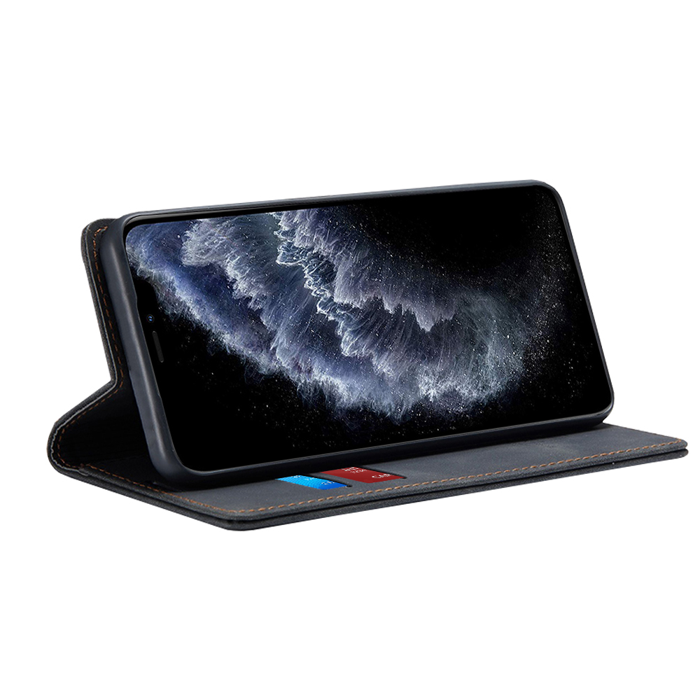Kryt se pyšní sofistikovaným peněženkovým designem s texturou připomínající broušenou kůži, která mu dodává luxusní a zároveň praktický vzhled. Černá barva je doplněna kontrastním prošíváním v hnědém odstínu po okrajích a na hřbetu, což podtrhuje jeho precizní zpracování a dodává mu osobitý šarm. Uvnitř krytu naleznete praktické přihrádky na dvě platební karty a větší kapsu na bankovky, díky čemuž můžete mít vše důležité vždy po ruce. Telefon je bezpečně usazen v integrovaném silikonovém pouzdře, které zajišťuje maximální ochranu proti nárazům a pádům. Diskrétní logo značky Techsuit na přední straně pak decentně doplňuje celkový dojem.