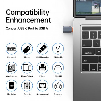 Představujeme Techsuit Premium OTG Adaptér SlateVolt (A9), nepostradatelného pomocníka pro každého, kdo potřebuje snadno a rychle propojit svá zařízení. Tento kompaktní a stylový adaptér vám umožní připojit standardní USB-A periferie k vašemu modernímu zařízení s portem USB-C, ať už jde o flash disky, klávesnice, myši nebo jiné USB příslušenství.