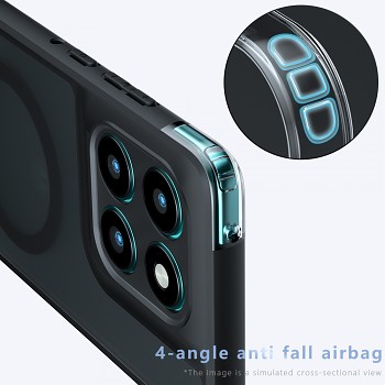 Pro maximální ochranu je pouzdro vybaveno zvýšenými okraji o 0,5 mm kolem displeje, které chrání obrazovku před poškrábáním při položení telefonu lícem dolů. Oblast fotoaparátu je chráněna 0,5mm vyvýšeným ochranným kroužkem a 1,5mm PC zadní deskou, což zajišťuje komplexní ochranu objektivů. Díky čtyřem rohovým airbagům a pokročilé struktuře pohlcující nárazy poskytuje pouzdro ochranu proti pádům z výšky až 2,4 metru.