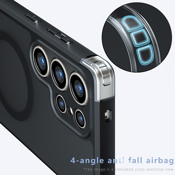 Speciální 4-úhlové anti-pádové airbagy jsou integrovány v rozích krytu, aby absorbovaly nárazy a poskytovaly maximální ochranu při pádech. Kryt je vyroben z kombinace matného PC backboardu a matného kompozitního TPU materiálu, což zajišťuje jeho odolnost a dlouhou životnost.