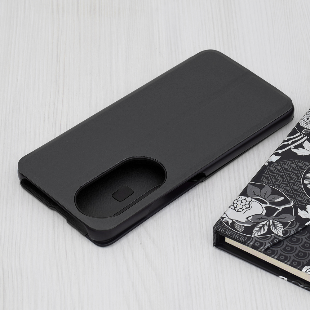 Design pouzdra eFold se vyznačuje minimalistickým a zároveň funkčním provedením. Přední flipový kryt je opatřen průhledným vertikálním pruhem, který umožňuje rychlý náhled na důležité informace, jako je čas a datum, aniž byste museli pouzdro otevírat. Povrch pouzdra má jemnou texturu imitující kůži, což dodává zařízení prémiový vzhled a příjemný pocit na dotek. Precizní zpracování zajišťuje dokonalé výřezy pro fotoaparáty, konektory a reproduktory, zatímco integrovaná funkce stojánku poskytuje pohodlí při sledování médií.