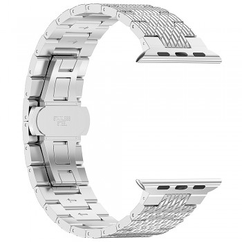 Řemínek W052 se pyšní nadčasovým a univerzálním designem, který se hodí pro každou příležitost – od formálních událostí až po běžné denní nošení. Je vyroben z kvalitního kovu ve stříbrné barvě, což zaručuje jeho dlouhou životnost a odolnost proti opotřebení. Jeho šířka 32 mm zajišťuje robustní, avšak elegantní vzhled na zápěstí. Díky preciznímu zpracování a hladkému povrchu je řemínek příjemný na dotek a minimalizuje riziko podráždění pokožky. Klasické zapínání pak zajišťuje bezpečné a snadné upevnění.