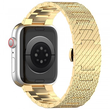 Techsuit Řemínek 32mm W052 Apple Watch ZlatýDopřejte svým Apple Watch dotek nepřehlédnutelné elegance a sofistikovanosti s luxusním řemínkem Techsuit W052 v oslnivém zlatém provedení. Tento 32mm široký řemínek je navržen tak, aby dokonale doplnil váš styl a zároveň zajistil maximální komfort při každodenním nošení. Je ideální volbou pro ty, kteří hledají kombinaci prémiového vzhledu a precizního zpracování.