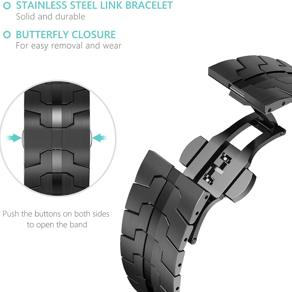 Pro snadné a bezpečné upevnění je řemínek vybaven elegantní motýlkovou sponou (butterfly closure), která zajišťuje pohodlné nasazování a snímání hodinek a zároveň pevné držení na zápěstí.
