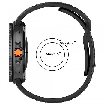 Řemínek Techsuit se pyšní moderním a sportovním designem. Je vyroben z vysoce kvalitního silikonu, který je příjemný na dotek, odolný vůči potu a vodě, a snadno se udržuje. Jeho povrch je opatřen jemnou texturou, která nejenže dodává řemínku dynamický vzhled, ale také zlepšuje prodyšnost a zabraňuje klouzání. Klasické zapínání s kovovou sponou zajišťuje bezpečné a spolehlivé uchycení na zápěstí.