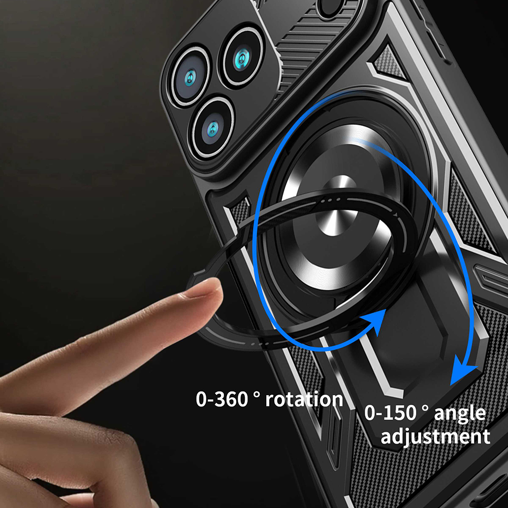 Dominantním prvkem zadní strany je integrovaný multifunkční kroužek, který slouží jako praktický stojánek pro vertikální i horizontální sledování obsahu. Kroužek je otočný o 360° a umožňuje nastavení úhlu v rozsahu 0-150°, což zajišťuje optimální pozorovací komfort. Navíc je tato část pouzdra kompatibilní s bezdrátovým nabíjením a magnetickými držáky, což rozšiřuje možnosti jeho využití. Vnitřní strana pouzdra je opatřena speciálním vzorem pro rychlý odvod tepla, čímž přispívá k optimálnímu výkonu vašeho telefonu.