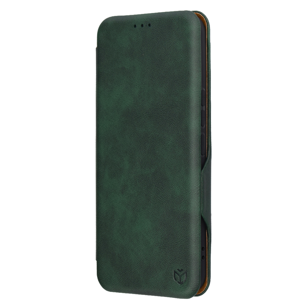 Pouzdro Techsuit Safe Wallet Plus se pyšní sofistikovaným designem, který okamžitě upoutá pozornost. Jeho vnější strana je vyrobena z materiálu s jemnou texturou, připomínající broušenou kůži, v hlubokém zeleném odstínu, který dodává pouzdru luxusní a nadčasový vzhled. Vnitřní strana pouzdra je v kontrastní světle hnědé barvě, což podtrhuje jeho elegantní estetiku.