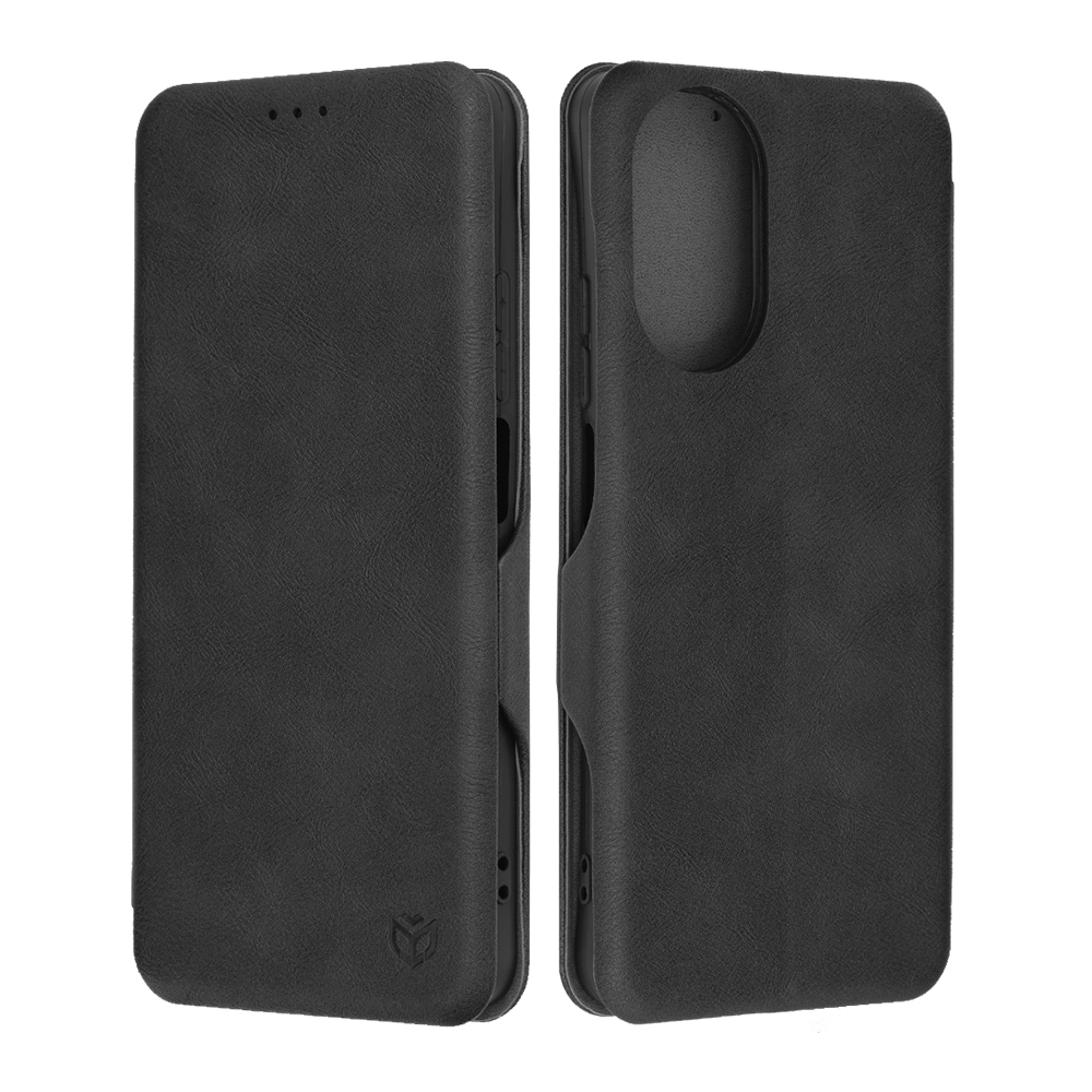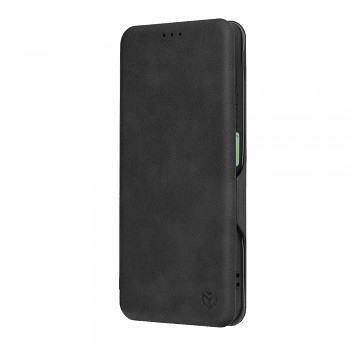 Pouzdro Techsuit Safe Wallet Plus se pyšní elegantním černým provedením s jemnou texturou, která dodává pouzdru sofistikovaný vzhled a příjemný pocit na dotek. Jedná se o typ "flipového" pouzdra, které kompletně chrání váš telefon ze všech stran. Přední strana pouzdra je hladká a minimalistická, s decentním logem Techsuit v dolní části.