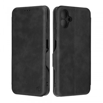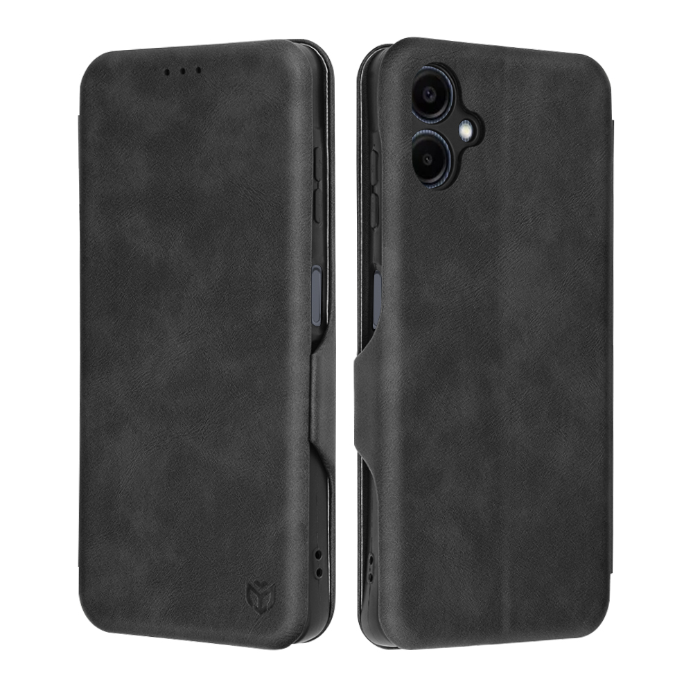 Pouzdro Techsuit Safe Wallet Plus se pyšní sofistikovaným vzhledem v matné černé barvě s texturou připomínající broušenou kůži, která je příjemná na dotek a dodává telefonu luxusní nádech. Na přední straně je decentně vyraženo logo Techsuit, které podtrhuje jeho originalitu. Díky preciznímu zpracování jsou zajištěny dokonalé výřezy pro fotoaparát, konektory, mikrofony a reproduktory, což zaručuje plnou funkčnost vašeho zařízení bez jakéhokoli omezení. Tlačítka si zachovávají jistý stisk a přístup k nabíjecímu portu je vždy bezproblémový. Integrovaný magnetický uzávěr spolehlivě drží pouzdro zavřené a chrání displej před poškrábáním.