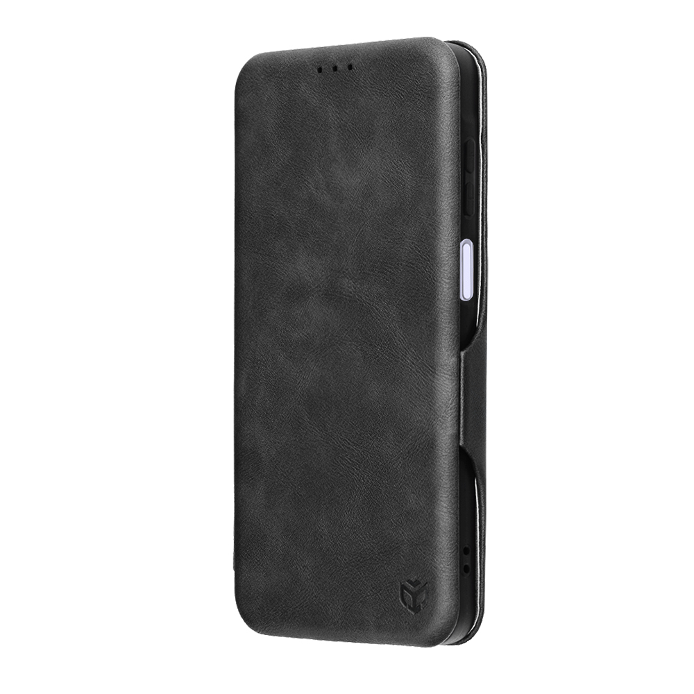 Pouzdro Techsuit Safe Wallet Plus se pyšní minimalistickým a elegantním designem s texturou připomínající broušenou kůži, která mu dodává prémiový vzhled a příjemný pocit na dotek. Jeho flipové provedení chrání displej telefonu před poškrábáním a nárazy, zatímco precizní výřezy zajišťují bezproblémový přístup ke všem konektorům, tlačítkům a fotoaparátu. Na přední straně jsou decentně umístěny tři malé otvory pro reproduktor, umožňující telefonování i se zavřeným pouzdrem. Vnitřní strana pouzdra je navržena tak, aby poskytovala prostor pro karty nebo bankovky, čímž se z něj stává praktická peněženka. Logo Techsuit je decentně vyraženo v dolní části pouzdra, což podtrhuje jeho značkovou kvalitu.