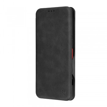 Pouzdro se pyšní elegantním a minimalistickým designem s matným, jemně texturovaným povrchem, který připomíná kůži a příjemně se drží v ruce. Precizní zpracování je patrné na každém detailu, včetně dokonale padnoucích výřezů pro fotoaparáty, které jsou navíc zvýrazněny stylovým červeným akcentem, podtrhujícím originální design telefonu. Na přední straně pouzdra naleznete diskrétní otvory pro reproduktor, umožňující telefonování i se zavřeným pouzdrem. Subtilní logo značky Techsuit je decentně vyraženo v dolní části přední klopy. Pouzdro je typu "wallet", což znamená, že kromě ochrany nabízí i praktické vnitřní kapsy pro uložení platebních karet nebo bankovek, a lze jej snadno přeměnit na funkční stojánek pro pohodlné sledování obsahu.