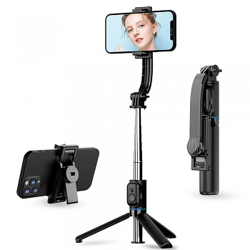 Techsuit Selfie tyč C01 se stativem Bluetooth 106cm ČernáPředstavujeme vám multifunkční selfie tyč Techsuit C01, která je ideálním společníkem pro každého, kdo miluje zachycování nezapomenutelných okamžiků. Ať už natáčíte živá videa, pořizujete skupinové fotografie nebo si užíváte dokonalé selfie, tato tyč vám zajistí stabilitu a flexibilitu, kterou potřebujete.