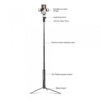Techsuit Selfie tyč K30S Stativ Bluetooth LED 167cm ČernáObjevte novou úroveň fotografování a natáčení videí s multifunkční selfie tyčí a stativem Techsuit K30S. Tento inovativní pomocník v elegantním černém provedení je navržen tak, aby splnil požadavky i těch nejnáročnějších tvůrců obsahu a milovníků dokonalých snímků. S maximální délkou až 167 cm vám umožní zachytit široké záběry a skupinové fotografie s lehkostí.