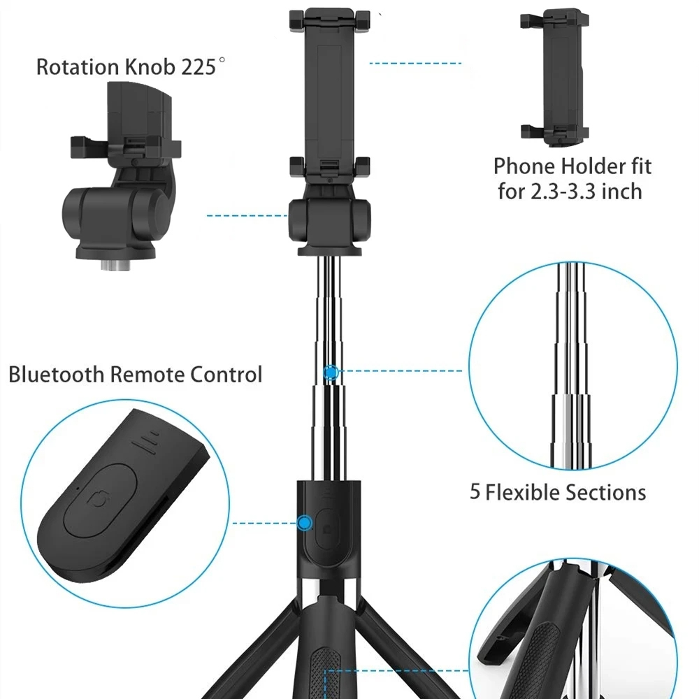 Držák telefonu je navržen pro maximální adaptabilitu – umožňuje otáčení o 360 stupňů pro horizontální i vertikální záběry a navíc nabízí 225stupňové nastavení úhlu pro nalezení ideální perspektivy. Celý design je promyšlený do posledního detailu, kombinuje odolný plast s elegantními kovovými prvky, což zajišťuje dlouhou životnost a moderní vzhled.