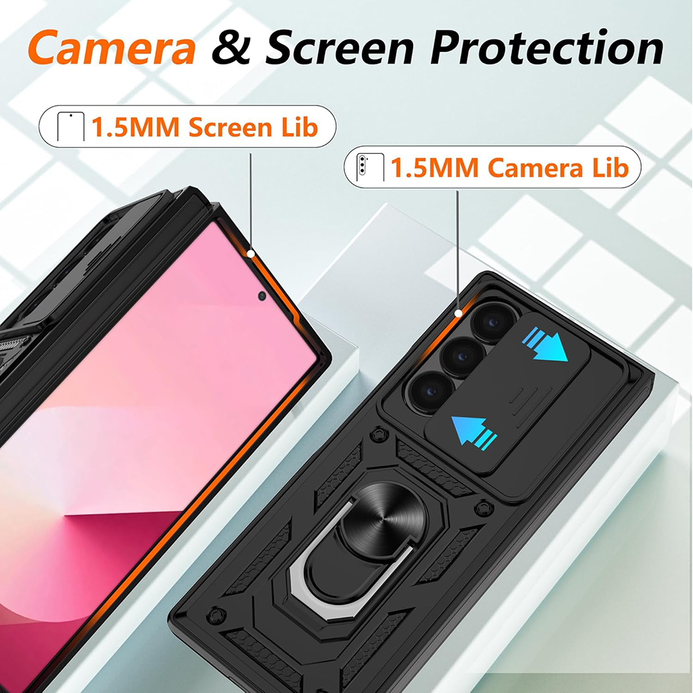Pouzdro Techsuit CamShield Series se pyšní promyšleným a odolným designem. Jeho černá barva dodává telefonu sofistikovaný vzhled, zatímco robustní textura na zadní straně nejen zvyšuje odolnost proti nárazům, ale také zajišťuje pevný a jistý úchop. Klíčovým prvkem je integrovaný posuvný kryt fotoaparátu (CamShield), který chrání citlivé objektivy před poškrábáním a nečistotami, a zároveň zajišťuje vaše soukromí. Dalším praktickým doplňkem je integrovaný kovový kroužek, který slouží jako bezpečný držák pro lepší manipulaci s telefonem a zároveň jako praktický stojánek pro pohodlné sledování obsahu.