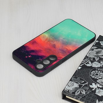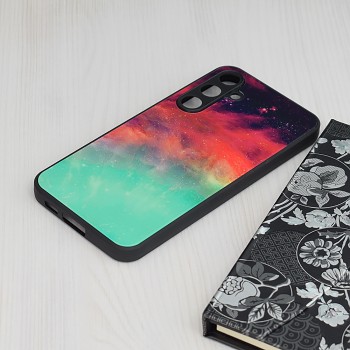 Pouzdro "Fiery Ocean" se pyšní jedinečným vizuálním zpracováním. Jeho zadní strana je zdobena fascinujícím gradientem, který přechází z hlubokých, ohnivých odstínů červené a purpurové, evokujících kosmickou mlhovinu plnou hvězd, do svěžího a jasného tyrkysově zeleného tónu, připomínajícího hlubiny oceánu. Tento dynamický barevný přechod dodává pouzdru moderní a luxusní vzhled. Lesklý povrch navíc podtrhuje intenzitu barev a zajišťuje, že váš telefon bude vždy středem pozornosti. Černé okraje pouzdra pak poskytují elegantní kontrast a zároveň zaručují spolehlivou ochranu.