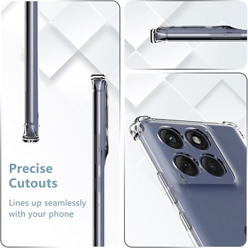 Tento obal se pyšní křišťálově čistým průhledným designem, který nechá vyniknout původní barvu a linie vašeho Motorola Moto G86. Je vyroben z vysoce kvalitního silikonu s přidanou antioxidační vrstvou, která zajišťuje dlouhotrvající průzračnost a odolnost proti žloutnutí. Klíčovým prvkem jsou zesílené rohy, které efektivně absorbují nárazy a poskytují zvýšenou ochranu proti pádům a otřesům.