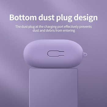 Pouzdro je vyrobeno z vysoce kvalitního silikonu v elegantní černé barvě. Jeho hladký a ultratenký materiál zajišťuje, že se sluchátka pohodlně drží v ruce a snadno se vejdou do kapsy, aniž by přidávala zbytečný objem. Design je minimalistický a sofistikovaný, s precizními výřezy, které umožňují snadný přístup k nabíjecímu portu a indikátoru stavu baterie. Matný povrch pouzdra je příjemný na dotek a odolný proti otiskům prstů.