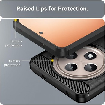 Pouzdro Techsuit Carbon Silicone se pyšní sofistikovaným designem v černé barvě. Zadní strana je opatřena elegantní broušenou texturou, která nejenže dodává pouzdru moderní vzhled, ale také účinně zabraňuje ulpívání otisků prstů. Horní a spodní část zadní strany je navíc doplněna o stylové detaily s texturou karbonových vláken, které podtrhují sportovní a dynamický charakter pouzdra.