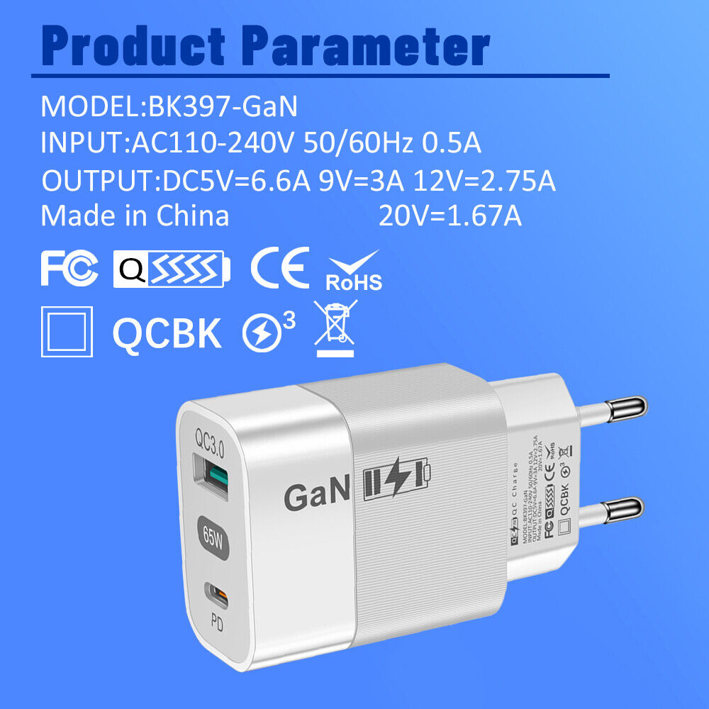 Tato nabíječka je vybavena nejmodernějšími technologiemi pro maximální výkon a bezpečnost. Nabízí celkový výkon 65W, což je dostatečné pro rychlé nabíjení široké škály zařízení, od chytrých telefonů a tabletů až po notebooky. Disponuje dvěma výstupními porty: USB Type C s Power Delivery (PD) a USB Type A s Quick Charge 3.0 (QC3.0), což umožňuje nabíjet dvě zařízení současně s optimální rychlostí. Technologie GaN zajišťuje vyšší účinnost, nižší zahřívání a menší velikost oproti tradičním křemíkovým nabíječkám.