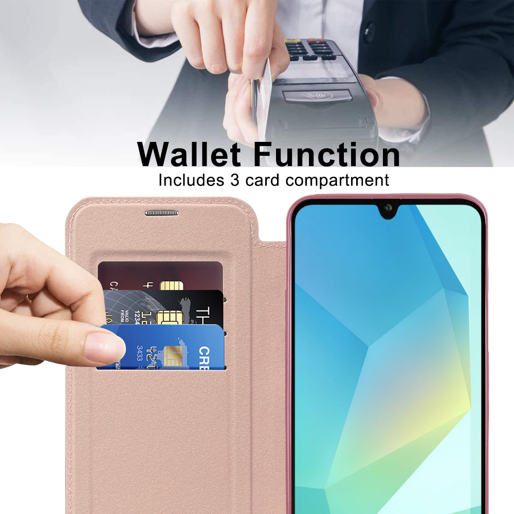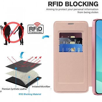 Toto knížkové pouzdro se pyšní promyšleným designem, který kombinuje styl s praktičností. Vnější část je vyrobena z prémiové syntetické kůže v jemném růžovém odstínu, která dodává pouzdru luxusní vzhled a příjemný pocit na dotek. Vnitřní strana předního flipu je opatřena třemi praktickými přihrádkami na karty, což z pouzdra činí ideálního společníka pro každodenní nošení, jelikož můžete mít důležité doklady a platební karty vždy po ruce. Pro maximální bezpečí vašich osobních údajů je pouzdro vybaveno technologií RFID blokování, která chrání vaše karty před neoprávněným skenováním.