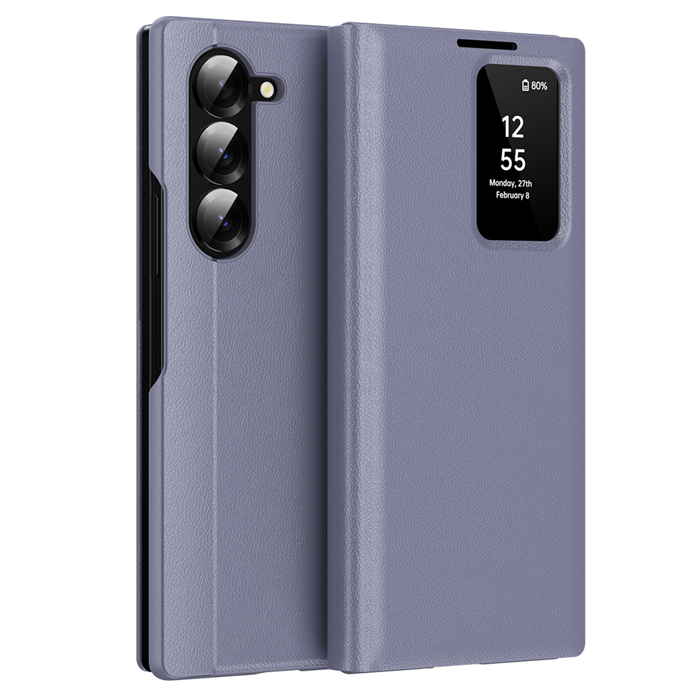 Pouzdro Techsuit SmartView Series se pyšní luxusním vzhledem díky materiálu připomínajícímu první vrstvu hovězí kůže, který dodává pouzdru elegantní texturu a příjemný pocit na dotek. Jeho fialový odstín je moderní a stylový, perfektně doplňující design vašeho telefonu. Klíčovou vlastností je inteligentní průhledné okénko na přední straně, které umožňuje rychlý přehled o čase, datu, stavu baterie a příchozích hovorech, aniž byste museli pouzdro otevírat.