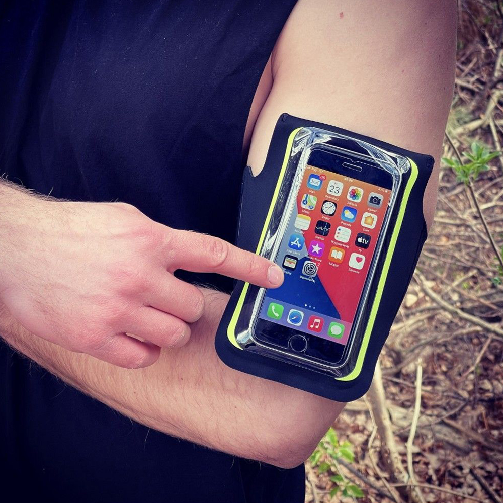 Náramek Techsuit TH10 se vyznačuje moderním a sportovním designem. Je vyroben z odolného a prodyšného materiálu, který zajišťuje pohodlí i při intenzivním tréninku. Dominantním prvkem je výrazný neonově zelený lem, který elegantně ohraničuje průhlednou dotykovou plochu pro displej telefonu a dodává náramku dynamický vzhled. Perforace na pásku zajišťují optimální ventilaci a zabraňují hromadění vlhkosti. Telefon je bezpečně uložen v kapse s průhlednou fólií, která umožňuje plné ovládání dotykového displeje bez nutnosti vyjmutí zařízení. Spolehlivé zapínání na suchý zip garantuje pevné a individuálně nastavitelné uchycení na paži, zatímco logo Techsuit decentně podtrhuje kvalitu značky.