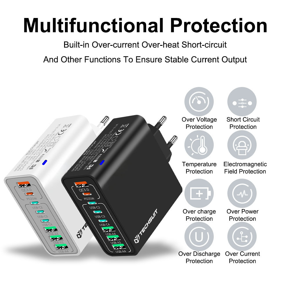 Techsuit Wall Charger CHPD224 4x USB 4x Type-C Rychlé nabíjení 65W BíláPředstavujeme Techsuit nástěnnou nabíječku CHPD224, která přináší revoluci v nabíjení vašich elektronických zařízení. S touto výkonnou a elegantní nabíječkou se již nemusíte obávat nedostatku volných zásuvek ani pomalého nabíjení. Je navržena tak, aby splňovala požadavky i těch nejnáročnějších uživatelů a zajistila maximální efektivitu a bezpečnost.