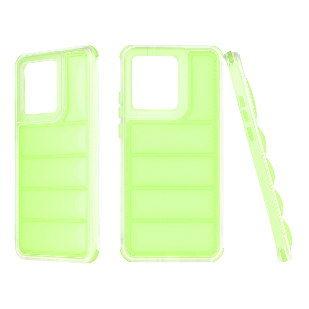 Kryt Techsuit Wave Shield v zářivé zelené barvě se vyznačuje moderním a funkčním designem. Jeho zadní strana je opatřena výraznými horizontálními hřebeny, které připomínají vlnky nebo prošívaný vzor, což nejen dodává pouzdru dynamický vzhled, ale zároveň zlepšuje úchop a minimalizuje riziko vyklouznutí telefonu z ruky. Boky pouzdra jsou navrženy s ergonomickými vlnkovými prolisy pro ještě jistější držení. Vyrobeno z flexibilního, ale odolného TPU materiálu, který efektivně absorbuje nárazy a chrání zařízení před poškrábáním a pády. Přesné výřezy zajišťují snadný přístup ke všem portům a funkcím telefonu, zatímco zvýšené okraje kolem displeje a modulu fotoaparátu poskytují dodatečnou ochranu proti přímému kontaktu s povrchem.