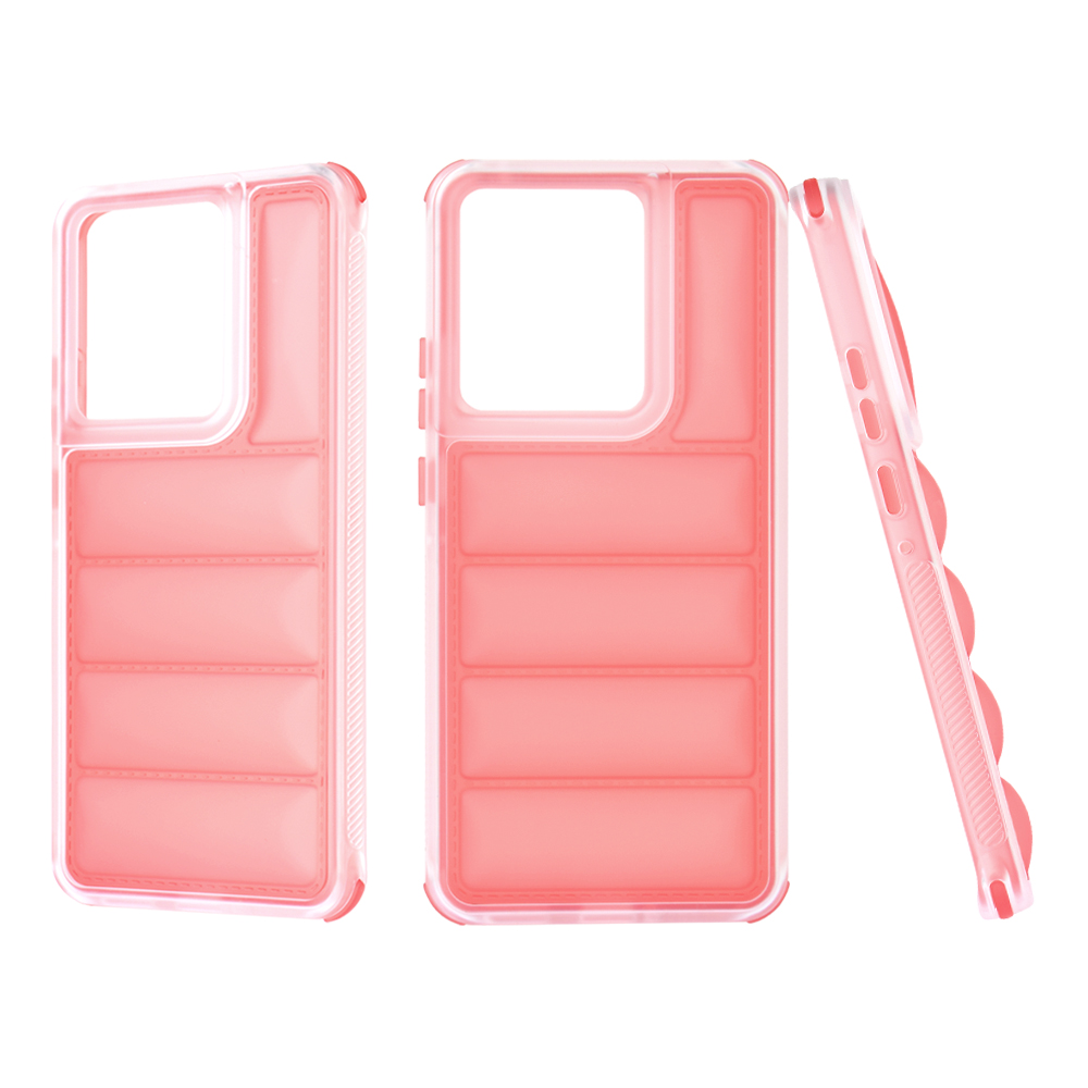 Pouzdro Techsuit Wave Shield se pyšní unikátním designem, který připomíná prošívanou bundu, což mu dodává nejen osobitý vzhled, ale i dodatečnou vrstvu tlumení nárazů. Jeho průsvitná červená barva nechá vyniknout originální design vašeho telefonu, zatímco mu poskytne diskrétní, ale účinnou ochranu. Boky pouzdra jsou ergonomicky tvarované s jemnými vlnkami, které zajišťují pohodlný a jistý úchop, minimalizující riziko vyklouznutí telefonu z ruky. Přesné výřezy pro fotoaparáty, konektory a reproduktory zaručují, že všechny funkce telefonu zůstanou plně dostupné a tlačítka si zachovají svůj jistý stisk.