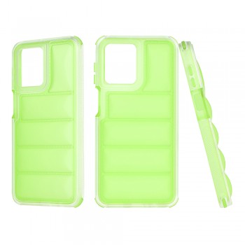 Pouzdro Techsuit Wave Shield se pyšní unikátním designem, který připomíná prošívanou bundu. Jeho zadní strana je tvořena horizontálními, mírně vystouplými segmenty, které vytvářejí dojem měkkého polstrování a zároveň zlepšují úchop. Zářivá zelená barva je průsvitná, což umožňuje částečně prosvítat originální barvě telefonu a dodává mu moderní a svěží vzhled. Boky pouzdra jsou opatřeny jemnou texturou pro ještě jistější držení v ruce. Díky přesnému zpracování jsou všechny výřezy pro konektory, mikrofony, reproduktory a fotoaparáty dokonale sladěny s modelem Motorola Moto G54, což zaručuje neomezenou funkčnost. Tlačítka si zachovávají svůj jistý stisk a přístup k nabíjecímu portu je vždy bezproblémový.