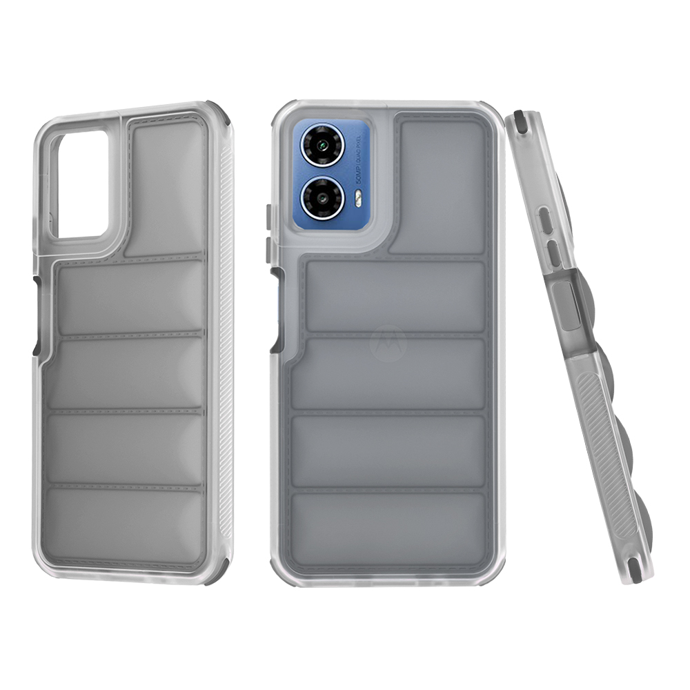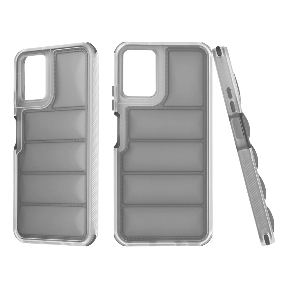 Pouzdro Techsuit Wave Shield se vyznačuje unikátním designem, který připomíná prošívanou bundu. Zadní strana je tvořena horizontálními, mírně vystouplými segmenty, které nejenže dodávají pouzdru osobitý vzhled, ale také přispívají k lepšímu úchopu a tlumení nárazů. Okraje pouzdra jsou zesílené a transparentní, což umožňuje vyniknout původnímu designu telefonu, zatímco vnitřní část s "vlnovým" vzorem je v decentní šedé barvě. Všechny výřezy pro konektory, mikrofony, reproduktory a fotoaparáty jsou precizně zpracované, což zajišťuje plnou funkčnost vašeho zařízení bez jakéhokoli omezení. Tlačítka si zachovávají jistý stisk a přístup k nabíjecímu portu je vždy bezproblémový.