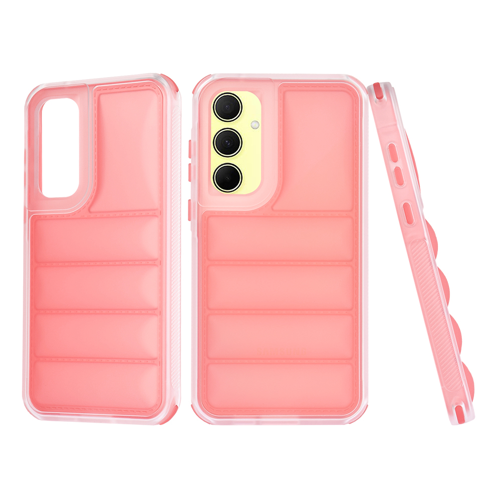 Pouzdro Techsuit Wave Shield se pyšní moderním a funkčním designem. Zadní strana krytu je vyvedena v průsvitné červené barvě s unikátním vlnitým nebo prošívaným vzorem, který připomíná design "puffer jacket". Tento vzor nejenže dodává pouzdru osobitý styl, ale také zvyšuje odolnost proti nárazům a zlepšuje úchop telefonu. Okraje pouzdra jsou transparentní, což vytváří zajímavý kontrast a nechává vyniknout původní design telefonu. Všechny výřezy pro fotoaparáty, konektory, mikrofony a reproduktory jsou precizně zpracované, což zajišťuje plnou funkčnost vašeho zařízení bez jakéhokoli omezení. Tlačítka si zachovávají jistý stisk a jsou snadno přístupná.