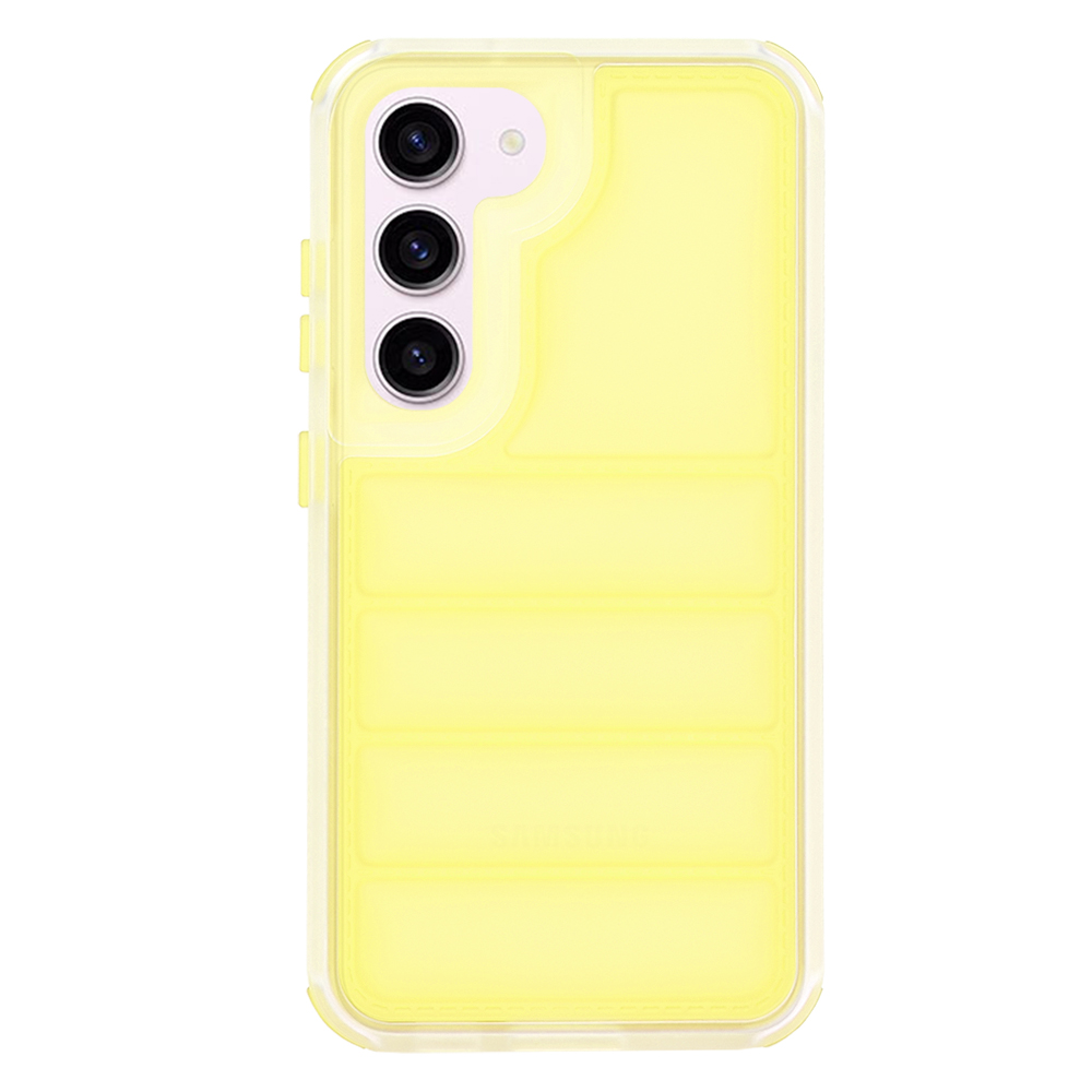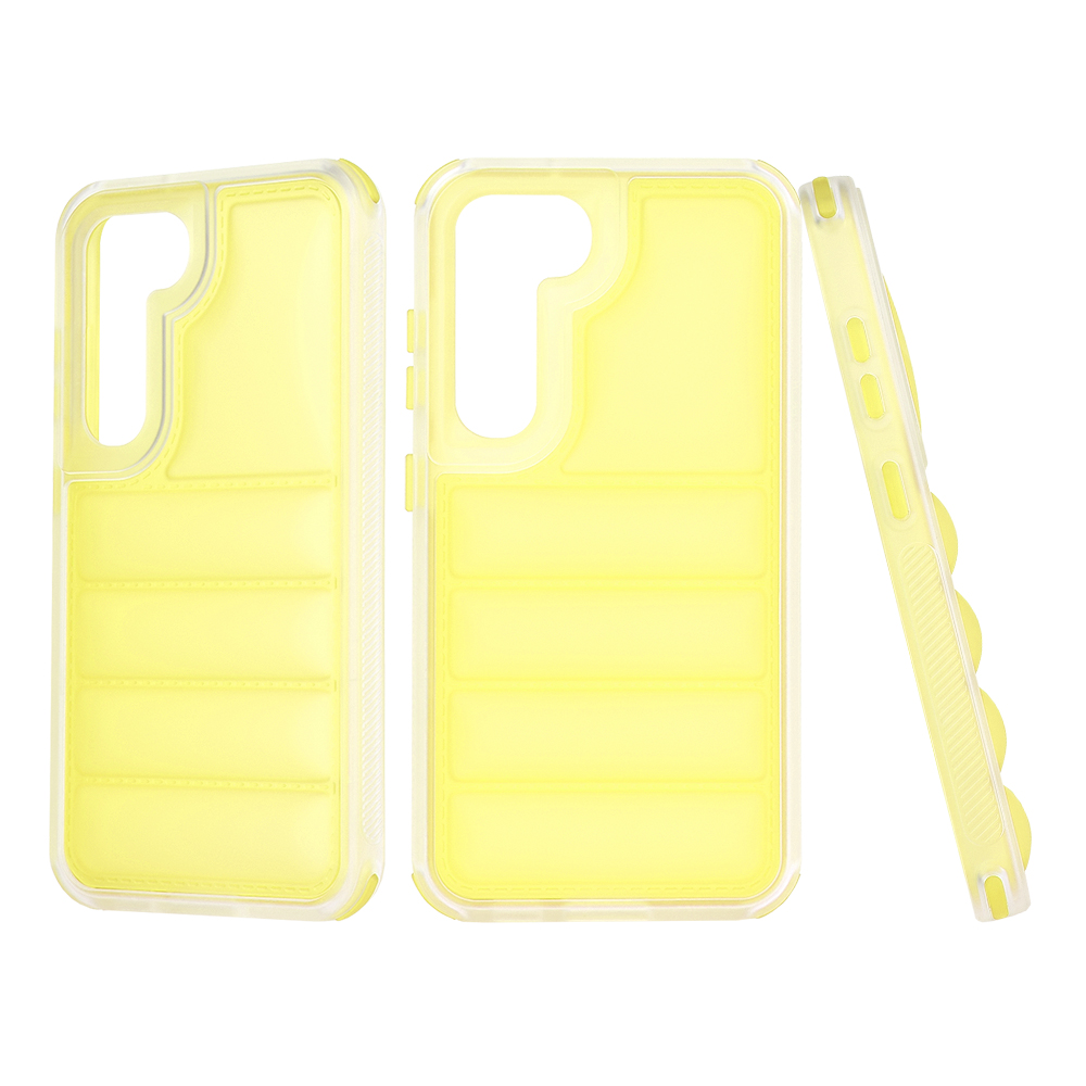 Zářivě žlutá barva je poloprůhledná, což umožňuje jemně prosvítat původní barvě telefonu a zároveň dodává zařízení svěží a energický vzhled. Okraje pouzdra jsou vyrobeny z mírně odlišného, průhlednějšího materiálu, který zajišťuje zvýšenou ochranu hran a rohů telefonu.
