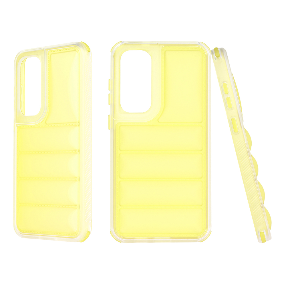 Pouzdro Techsuit Wave Shield v zářivě žluté barvě zaujme na první pohled svým unikátním designem. Zadní strana je opatřena horizontálními vlnitými prolisy, které nejenže dodávají pouzdru moderní a dynamický vzhled, ale zároveň zlepšují úchop telefonu a minimalizují riziko vyklouznutí z ruky. Tyto prolisy vytvářejí dojem "nafouknutého" nebo "prošívaného" povrchu, což je velmi stylové a funkční. Pouzdro je vyrobeno z průsvitného materiálu, který nechává vyniknout původní barvu vašeho telefonu, zatímco žlutý odstín dodává svěží a energický akcent. Zesílené rohy poskytují dodatečnou ochranu proti pádům a nárazům, zatímco přesné výřezy zajišťují bezproblémový přístup ke všem portům, tlačítkům a fotoaparátu. Tlačítka jsou navržena pro jistý a pohodlný stisk, což zaručuje plnou funkčnost bez kompromisů.