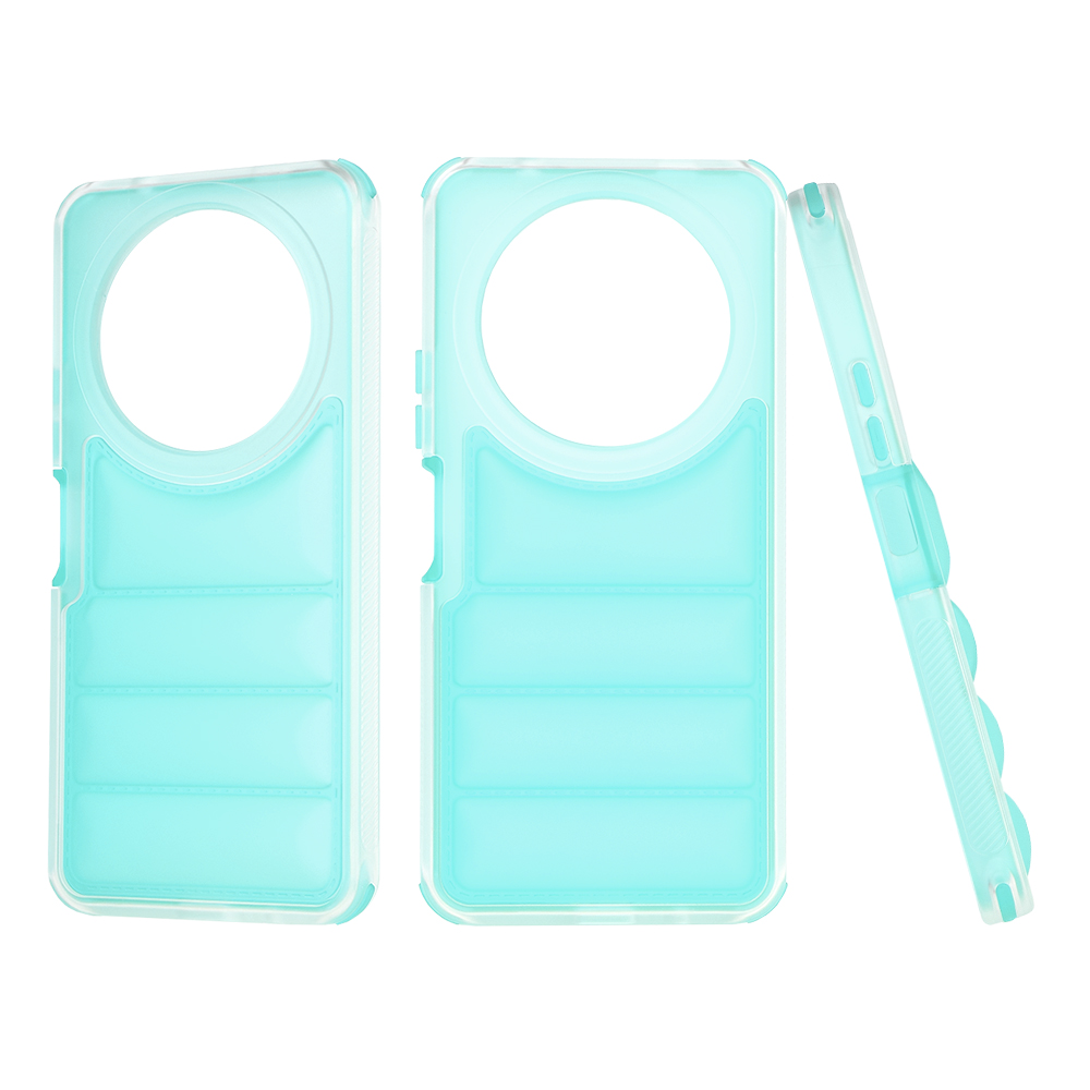 Pouzdro Techsuit Wave Shield se pyšní moderním a poutavým designem. Jeho průsvitná tyrkysová barva dodává telefonu svěží vzhled, zatímco zadní strana je zdobena unikátním vlnitým nebo prošívaným vzorem, který připomíná design "puffer jacket". Tento vzor nejenže vizuálně zaujme, ale také přispívá k lepšímu úchopu a dodatečné absorpci nárazů. Kryt je precizně tvarován s velkým kruhovým výřezem pro modul fotoaparátu, což zajišťuje jeho ochranu a zároveň neomezuje funkčnost. Všechny boční tlačítka jsou chráněna, ale zůstávají snadno stisknutelná a citlivá, zatímco přesné výřezy pro konektory a reproduktory zaručují bezproblémový přístup ke všem funkcím telefonu.