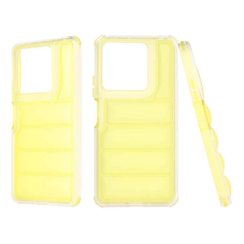 Kryt Techsuit Wave Shield se pyšní unikátním designem, který připomíná prošívanou bundu nebo jemné vlny, což mu dodává moderní a zároveň hravý vzhled. Jeho průsvitná žlutá barva dodá vašemu telefonu svěží a originální nádech, zatímco transparentní okraje decentně podtrhují původní design telefonu. Vyrobený z flexibilního a odolného materiálu, pravděpodobně TPU, poskytuje kryt efektivní absorpci nárazů a chrání telefon před poškrábáním, pády a každodenním opotřebením. Přesné výřezy pro konektory, mikrofony, reproduktory a fotoaparáty zajišťují, že funkčnost vašeho telefonu nebude nikdy omezena. Tlačítka mají jistý stisk a přístup k nabíjecímu portu je vždy bezproblémový, což zaručuje komfortní používání.