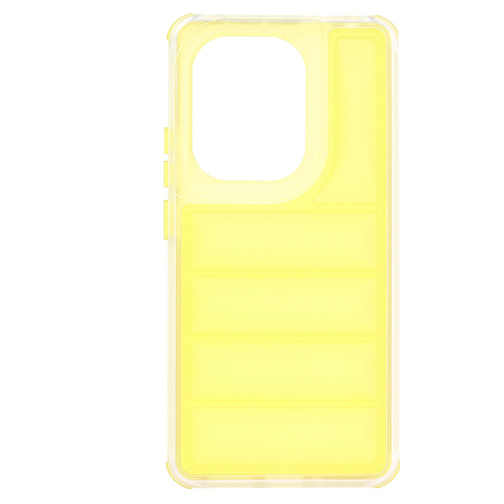 Pouzdro Techsuit Wave Shield v atraktivní žluté barvě se vyznačuje unikátním designem, který připomíná prošívanou bundu nebo vlnu. Zadní strana je zdobena horizontálními vystouplými liniemi, které nejenže dodávají pouzdru osobitý vzhled, ale také zlepšují úchop a poskytují zvýšenou ochranu proti nárazům. Díky průsvitnému materiálu zůstává zachován původní vzhled vašeho telefonu, zatímco žlutý odstín dodává svěží a moderní akcent.