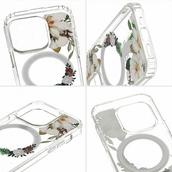 Tel Protect Flower Magsafe pro Iphone 12 Pro Max design 3Objevte kouzlo ochrany s naším Tel Protect Flower Magsafe, průhledným pouzdrem, které nejen chrání váš iPhone 12 Pro Max, ale také mu dodává jedinečný styl díky nádhernému květinovému vzoru. Toto pouzdro je navrženo tak, aby chránilo zadní stranu a boky vašeho smartphonu, a díky integrovaným magnetům je plně kompatibilní s příslušenstvím MagSafe.