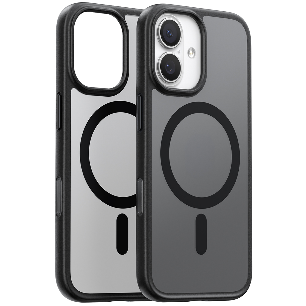 Kryt Torras Guardian Magnetic Series se pyšní elegantním černým provedením s průsvitnou, matnou zadní stranou, která decentně odhaluje ikonické logo Apple a integrovaný MagSafe kroužek. Zesílené černé okraje nejen dodávají krytu robustní vzhled, ale také zajišťují maximální ochranu. Okraje jsou navíc opatřeny texturou inspirovanou kůží Nappa, což zaručuje pohodlný a bezpečný úchop a zároveň odolnost proti otiskům prstů a mastnotě. Celkový design je štíhlý, elegantní a minimalistický.