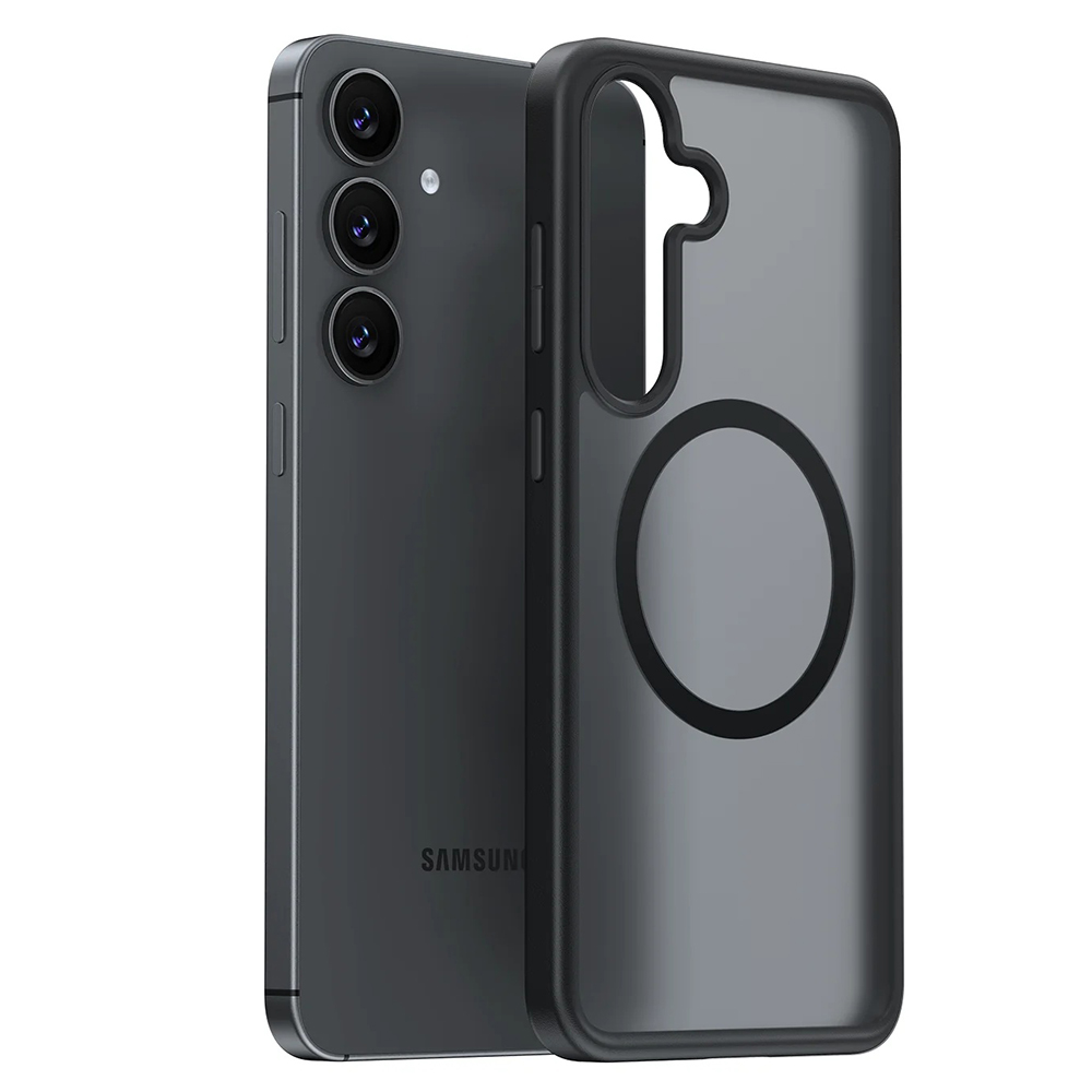 Kryt Torras Guardian Magnetic Series pro Samsung Galaxy S25 Plus se pyšní promyšleným designem, který efektivně chrání váš telefon a zároveň zachovává jeho elegantní vzhled. Zadní strana krytu je vyrobena z poloprůhledného materiálu v černé barvě, který decentně odhaluje logo Samsung a originální design telefonu, zatímco pevný černý rám dodává robustnost a jistý úchop. Integrovaný magnetický kroužek na zadní straně zajišťuje plnou kompatibilitu s technologií MagSafe, což umožňuje snadné a bezpečné připevnění magnetického příslušenství a rychlé bezdrátové nabíjení.