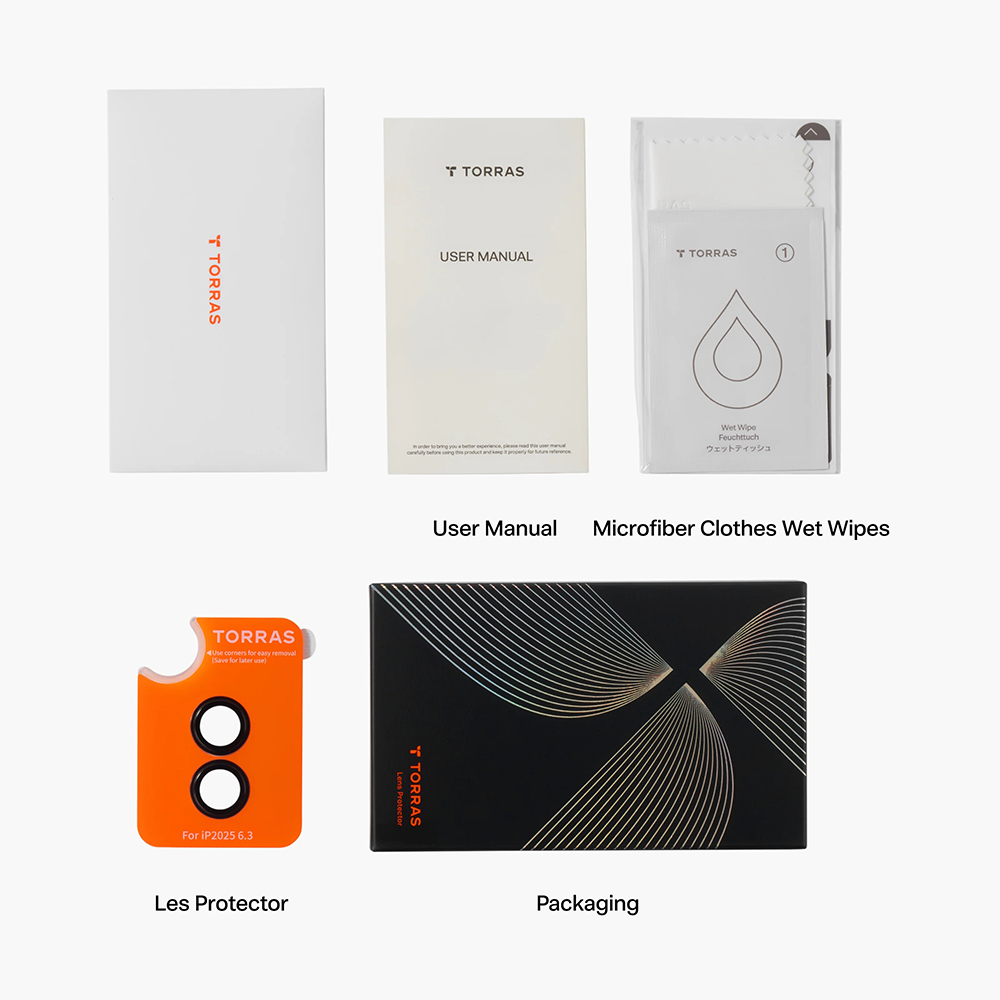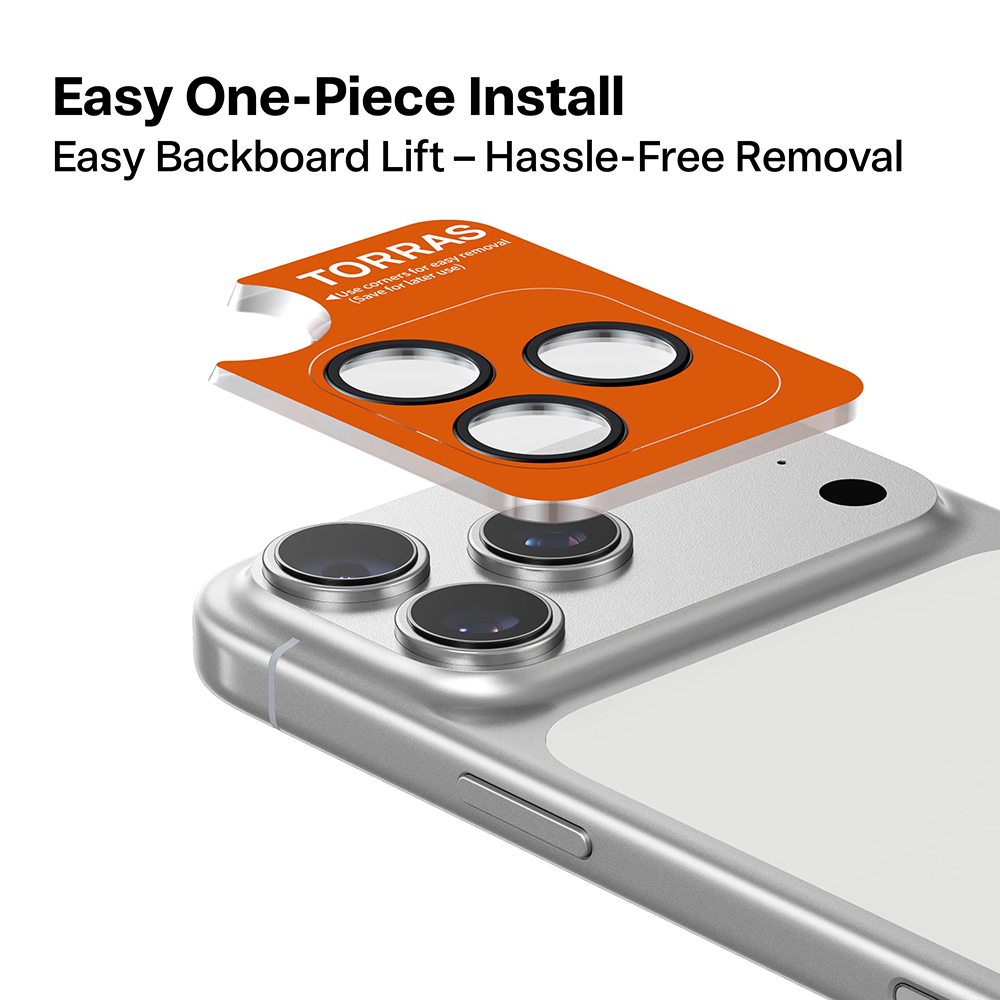 Ochrana kamery Torras Lensguard se skládá z individuálních ochranných kroužků, které precizně obepínají každý objektiv vašeho iPhone 17 Pro. Jejich minimalistický design v černé barvě s průhledným středem pro objektivy zajišťuje, že estetika vašeho telefonu zůstane nedotčena, zatímco funkčnost kamery je plně zachována. Díky snadné instalaci v jednom kroku a bezproblémovému odstranění je aplikace i výměna ochrany rychlá a jednoduchá.