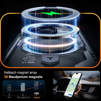 Jedním z klíčových prvků je integrovaný MagSafe kroužek, který je diskrétně zapuštěn do zadní strany krytu. Tento kroužek je osazen 38 neodymovými magnety, které zajišťují mimořádně silné a stabilní připojení s MagSafe příslušenstvím, s magnetickou silou až 18N. Inovativní design zahrnuje také skládací stojánek, který je elegantně integrován do MagSafe kroužku. Ten umožňuje pohodlné sledování obsahu v režimu na výšku i na šířku a slouží i jako praktický držák pro bezpečnější úchop telefonu.