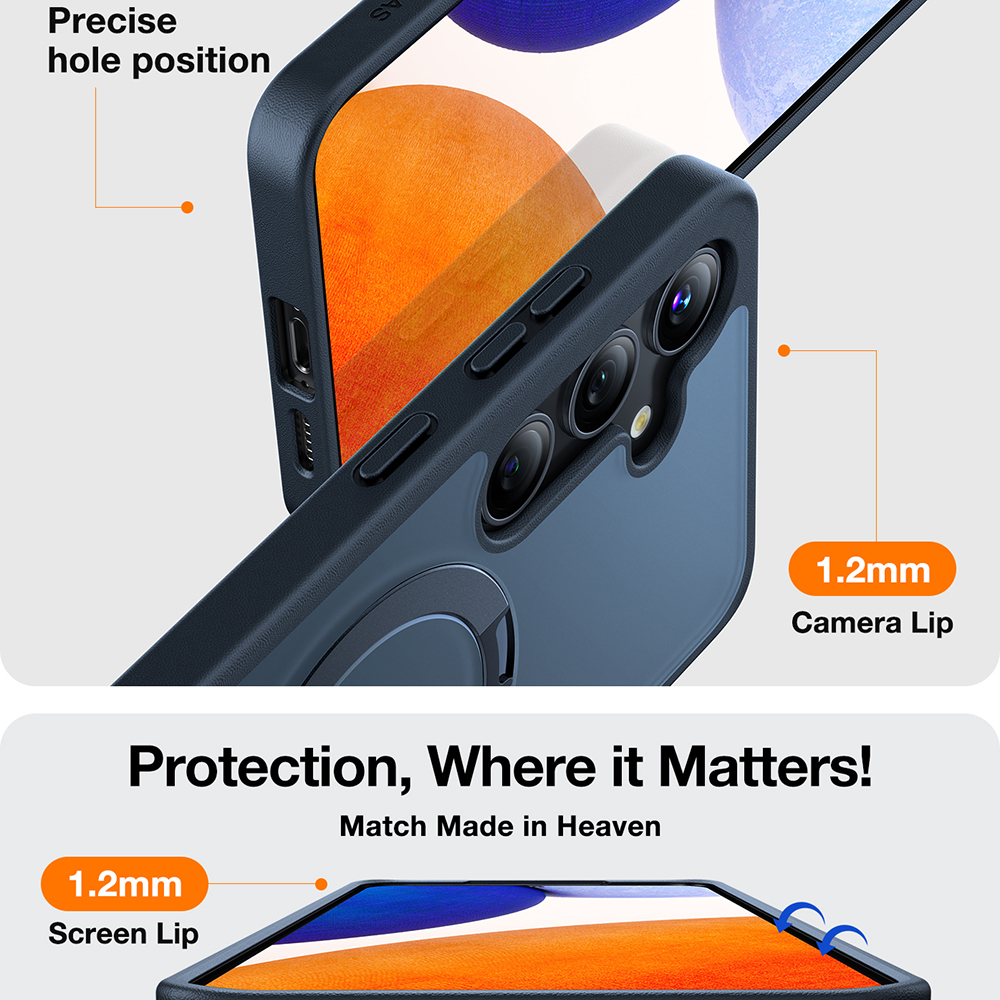 Kryt Torras Ostand MagSafe Series se vyznačuje minimalistickým a tenkým profilem, který podtrhuje přirozené linie vašeho telefonu, aniž by přidával zbytečný objem. Jeho matný černý povrch je příjemný na dotek a odolný proti otiskům prstů, což zajišťuje vždy čistý a profesionální vzhled. Integrovaný diskrétní stojánek (Ostand), který je elegantně zapuštěn do zadní strany krytu, umožňuje pohodlné sledování obsahu v horizontální i vertikální poloze. Díky plné kompatibilitě s technologií MagSafe je kryt vybaven silnými magnety, které zajišťují bezpečné a stabilní připojení veškerého MagSafe příslušenství, od bezdrátových nabíječek po peněženky.