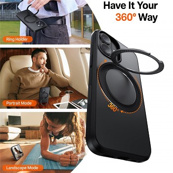 Kryt Torras Ostand Pro se pyšní matným, průsvitným zadním panelem, který decentně odhaluje originální design vašeho iPhone 17, zatímco mu dodává sofistikovaný vzhled. Robustní černé okraje jsou vyrobeny z odolného TPU z Německa a poskytují zesílenou ochranu proti pádům a nárazům. Klíčovým prvkem je integrovaný kroužek Ostand, který je diskrétně zapuštěn do zadní strany krytu. Tento kroužek se může otáčet o 360° a slouží jako praktický stojánek pro sledování obsahu v režimu na výšku i na šířku, nebo jako bezpečný držák pro pohodlné ovládání telefonu jednou rukou.