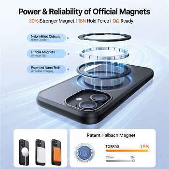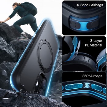 Torras Ostand Pro MagSafe Series je zkonstruován tak, aby poskytoval ochranu na vojenské úrovni (Military Grade). Využívá patentovanou technologii X-SHOCK Airbags a třívrstvý TPE materiál, které efektivně absorbují nárazy a rozptylují energii při pádu, čímž chrání váš iPhone 17 před poškozením. Kombinace odolného polykarbonátu (PC) a flexibilního TPU zajišťuje dlouhou životnost a spolehlivou ochranu v každodenním používání.