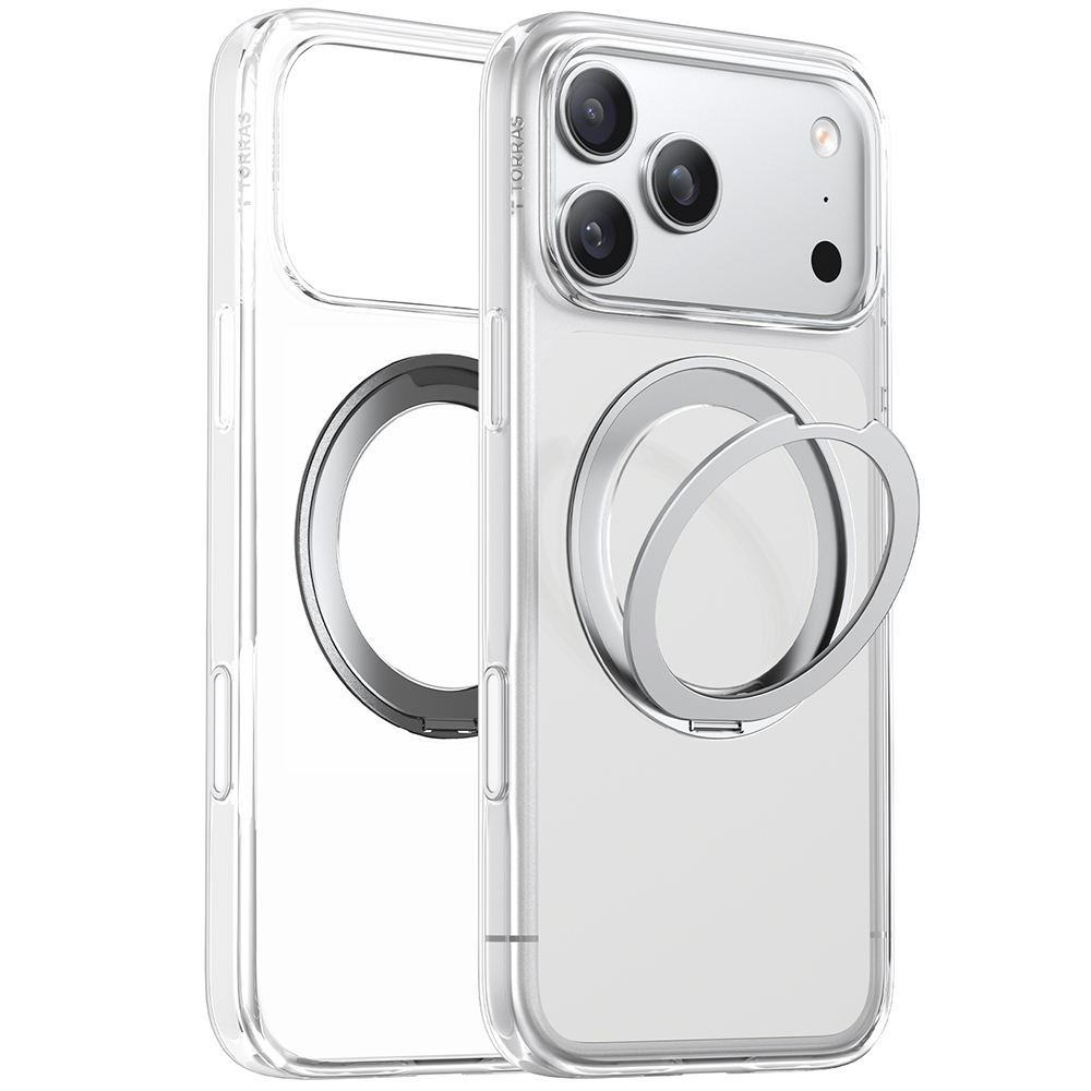 Kryt Torras Ostand Pro MagSafe Series se pyšní křišťálově čistou průhledností, která nechá vyniknout původní barvu a elegantní linie vašeho iPhone 17 Pro. Je vyroben z kombinace odolného polykarbonátu a flexibilního TPU, což zajišťuje dlouhodobou ochranu a komfortní úchop. Jeho design je promyšlen do posledního detailu, s precizními výřezy a citlivými tlačítky, včetně možnosti DIY tlačítek pro fotoaparát v různých barvách.